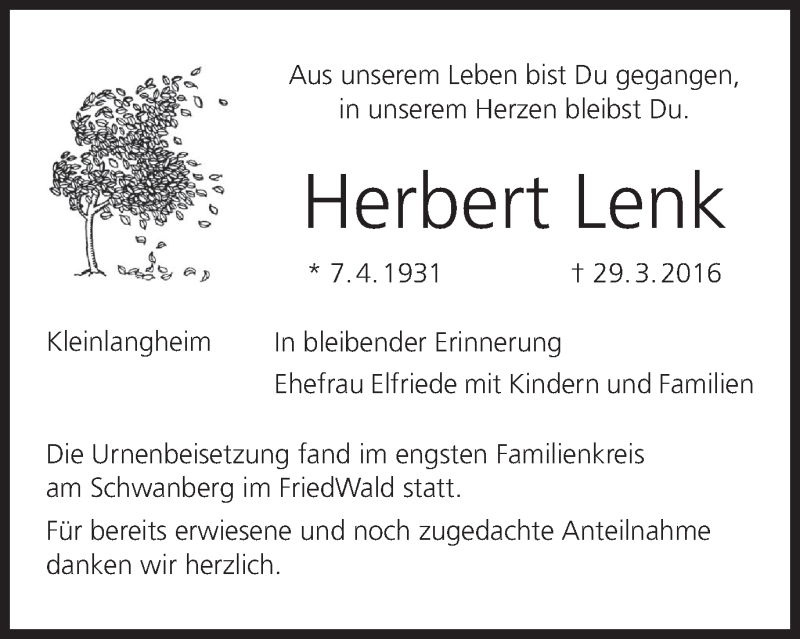 Hier finden Sie alle Traueranzeigen aus der Zeitung, die bisher für Herbert Lenk erschienen sind. Weitere Traueranzeigen, die in der Zeitung erscheinen, werden hier ebenfalls aufgelistet