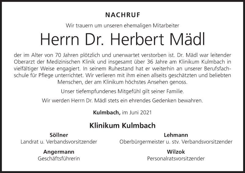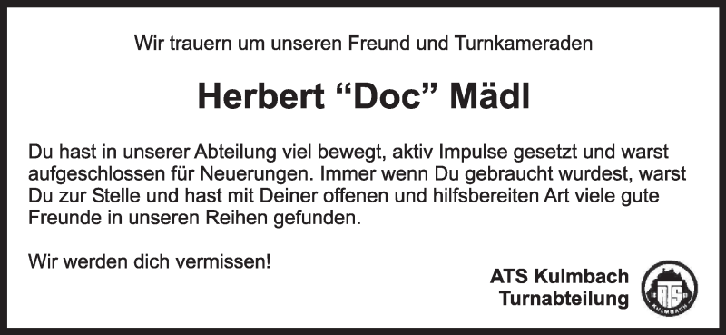 Hier finden Sie alle Traueranzeigen aus der Zeitung, die bisher für Herbert Mädl erschienen sind. Weitere Traueranzeigen, die in der Zeitung erscheinen, werden hier ebenfalls aufgelistet