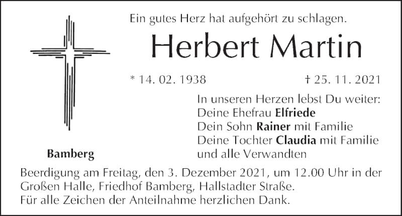 Hier finden Sie alle Traueranzeigen aus der Zeitung, die bisher für Herbert Martin erschienen sind. Weitere Traueranzeigen, die in der Zeitung erscheinen, werden hier ebenfalls aufgelistet