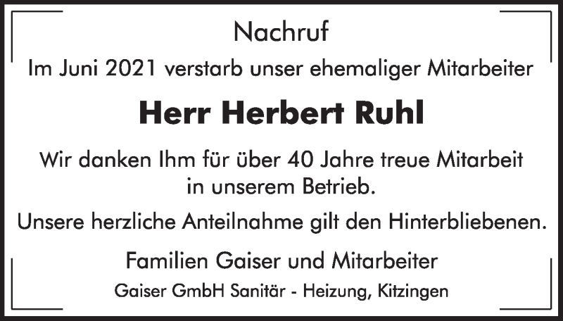 Hier finden Sie alle Traueranzeigen aus der Zeitung, die bisher für Herbert Ruhl erschienen sind. Weitere Traueranzeigen, die in der Zeitung erscheinen, werden hier ebenfalls aufgelistet