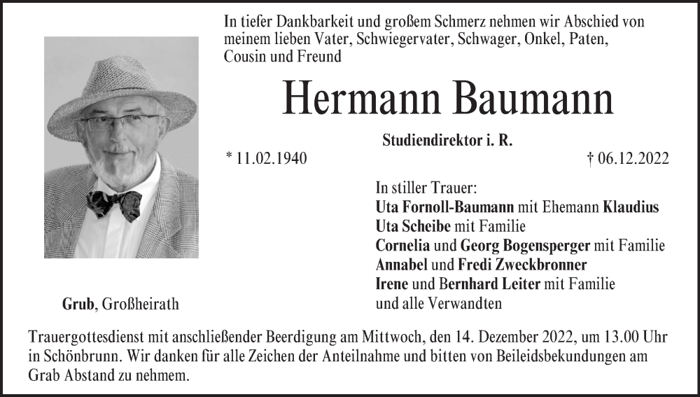 Hier finden Sie alle Traueranzeigen aus der Zeitung, die bisher für Hermann Baumann erschienen sind. Weitere Traueranzeigen, die in der Zeitung erscheinen, werden hier ebenfalls aufgelistet
