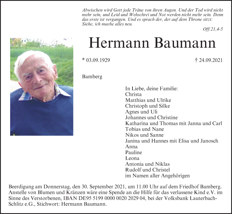 Hier finden Sie alle Traueranzeigen aus der Zeitung, die bisher für Hermann Baumann erschienen sind. Weitere Traueranzeigen, die in der Zeitung erscheinen, werden hier ebenfalls aufgelistet