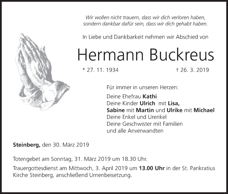 Hier finden Sie alle Traueranzeigen aus der Zeitung, die bisher für Hermann Buckreus erschienen sind. Weitere Traueranzeigen, die in der Zeitung erscheinen, werden hier ebenfalls aufgelistet