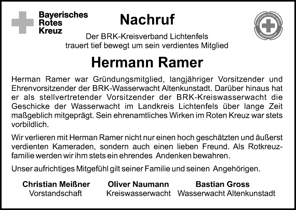 Hier finden Sie alle Traueranzeigen aus der Zeitung, die bisher für Hermann Ramer erschienen sind. Weitere Traueranzeigen, die in der Zeitung erscheinen, werden hier ebenfalls aufgelistet