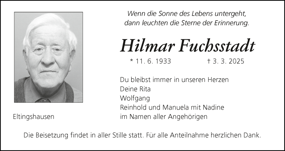 Hier finden Sie alle Traueranzeigen aus der Zeitung, die bisher für Hilmar Fuchsstadt erschienen sind. Weitere Traueranzeigen, die in der Zeitung erscheinen, werden hier ebenfalls aufgelistet