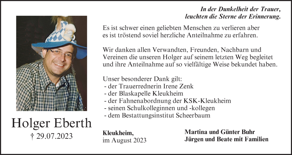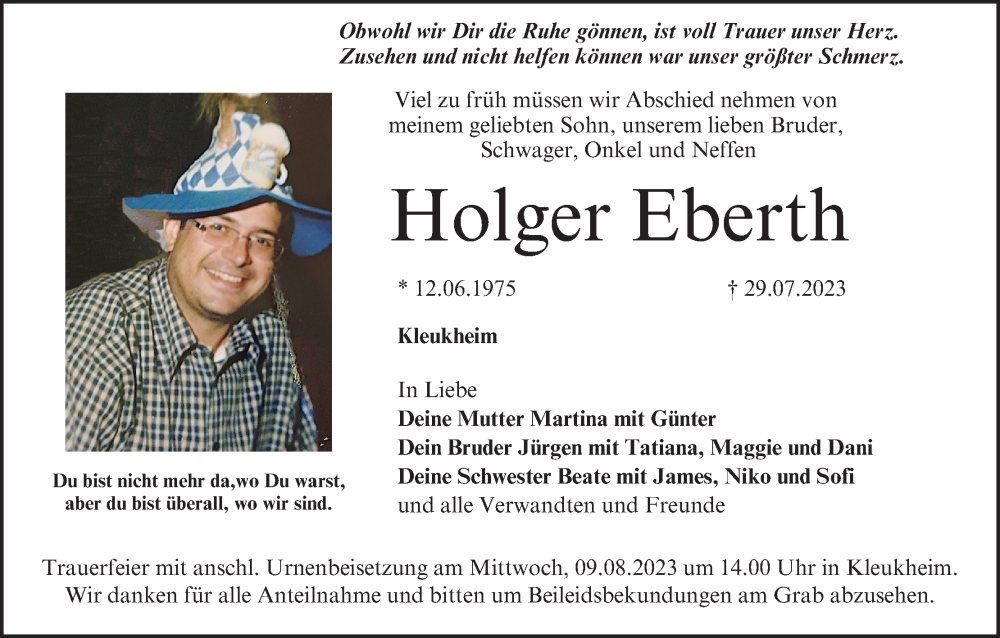 Hier finden Sie alle Traueranzeigen aus der Zeitung, die bisher für Holger Eberth erschienen sind. Weitere Traueranzeigen, die in der Zeitung erscheinen, werden hier ebenfalls aufgelistet