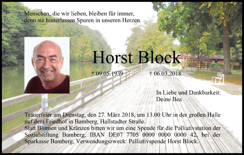 Hier finden Sie alle Traueranzeigen aus der Zeitung, die bisher für Horst Block erschienen sind. Weitere Traueranzeigen, die in der Zeitung erscheinen, werden hier ebenfalls aufgelistet