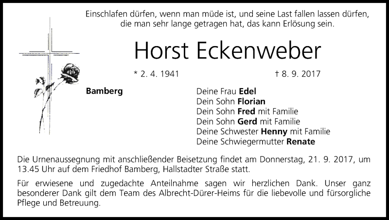 Hier finden Sie alle Traueranzeigen aus der Zeitung, die bisher für Horst Eckenweber erschienen sind. Weitere Traueranzeigen, die in der Zeitung erscheinen, werden hier ebenfalls aufgelistet