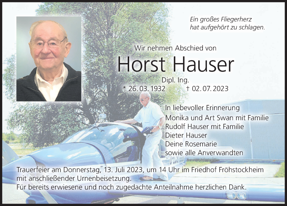 Hier finden Sie alle Traueranzeigen aus der Zeitung, die bisher für Horst Hauser erschienen sind. Weitere Traueranzeigen, die in der Zeitung erscheinen, werden hier ebenfalls aufgelistet