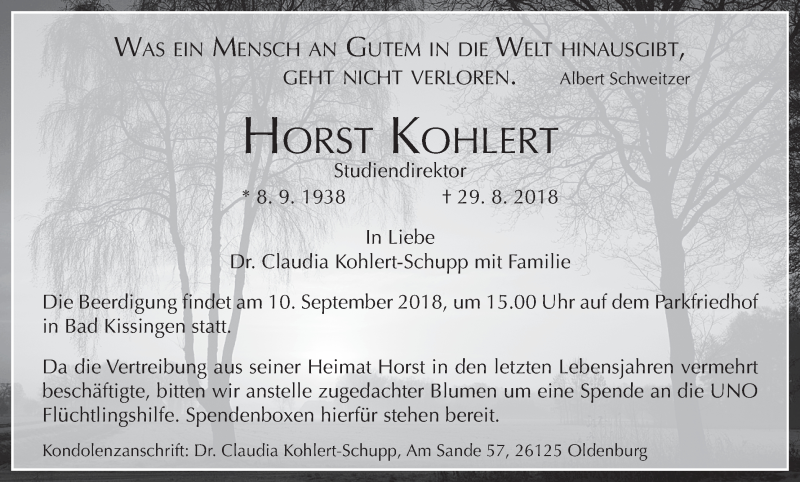 Hier finden Sie alle Traueranzeigen aus der Zeitung, die bisher für Horst Kohlert erschienen sind. Weitere Traueranzeigen, die in der Zeitung erscheinen, werden hier ebenfalls aufgelistet