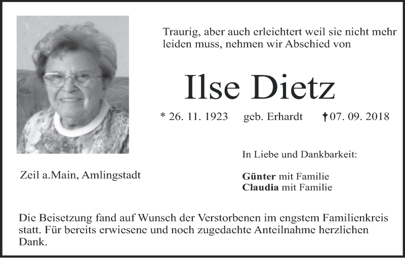 Hier finden Sie alle Traueranzeigen aus der Zeitung, die bisher für Ilse Dietz erschienen sind. Weitere Traueranzeigen, die in der Zeitung erscheinen, werden hier ebenfalls aufgelistet