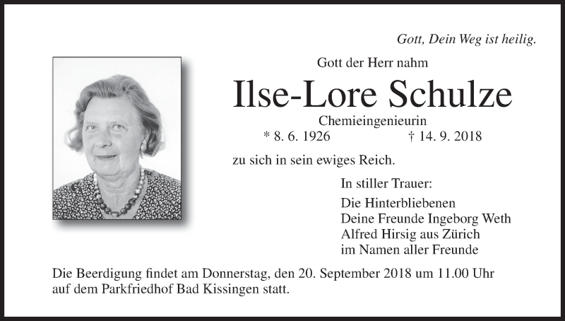 Hier finden Sie alle Traueranzeigen aus der Zeitung, die bisher für Ilse-Lore Schulze erschienen sind. Weitere Traueranzeigen, die in der Zeitung erscheinen, werden hier ebenfalls aufgelistet