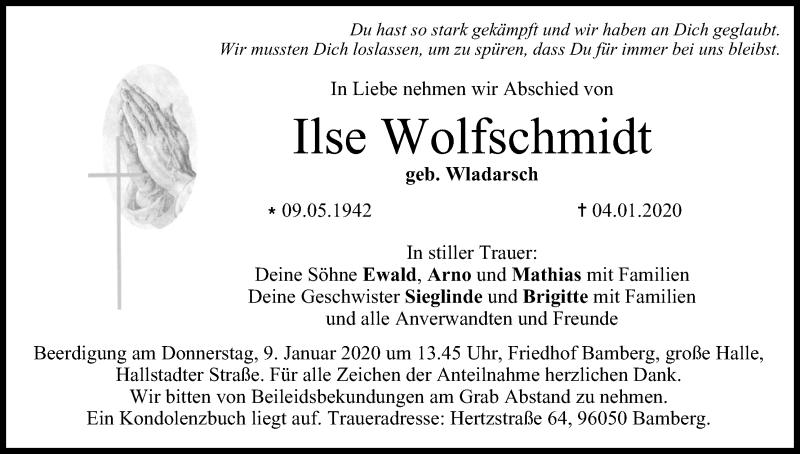 Hier finden Sie alle Traueranzeigen aus der Zeitung, die bisher für Ilse Wolfschmidt erschienen sind. Weitere Traueranzeigen, die in der Zeitung erscheinen, werden hier ebenfalls aufgelistet