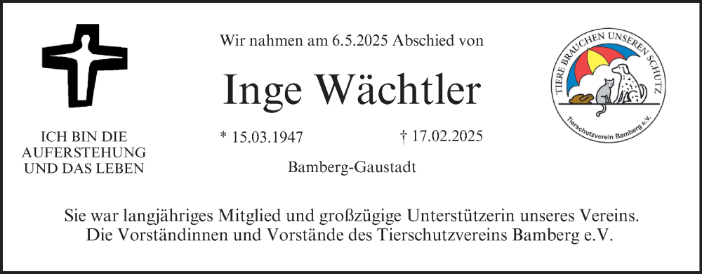 Hier finden Sie alle Traueranzeigen aus der Zeitung, die bisher für Inge Wächtler erschienen sind. Weitere Traueranzeigen, die in der Zeitung erscheinen, werden hier ebenfalls aufgelistet