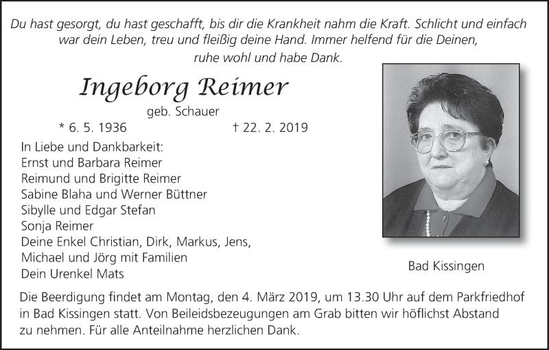 Hier finden Sie alle Traueranzeigen aus der Zeitung, die bisher für Ingeborg Reimer erschienen sind. Weitere Traueranzeigen, die in der Zeitung erscheinen, werden hier ebenfalls aufgelistet
