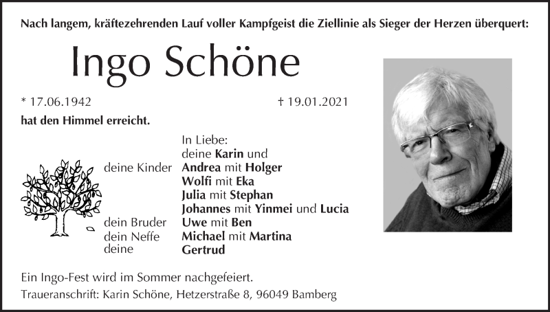 Hier finden Sie alle Traueranzeigen aus der Zeitung, die bisher für Ingo Schöne erschienen sind. Weitere Traueranzeigen, die in der Zeitung erscheinen, werden hier ebenfalls aufgelistet