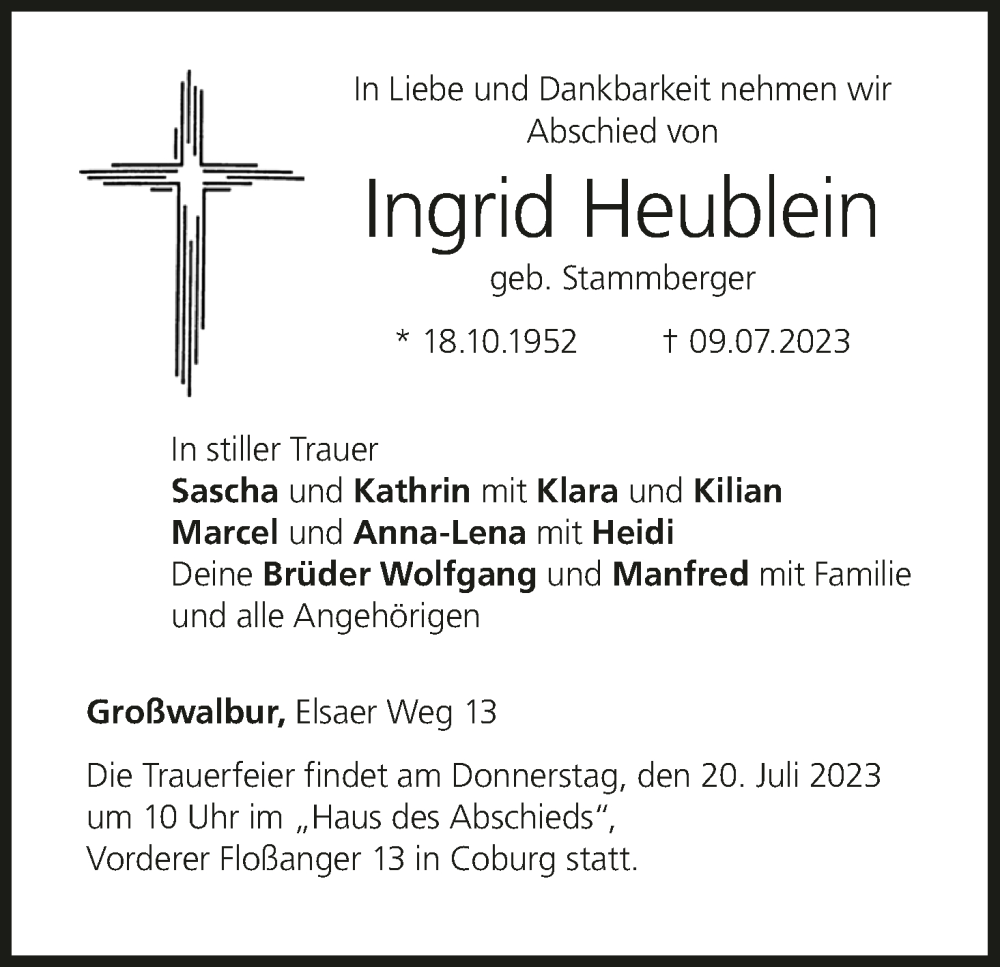 Hier finden Sie alle Traueranzeigen aus der Zeitung, die bisher für Ingrid Heublein erschienen sind. Weitere Traueranzeigen, die in der Zeitung erscheinen, werden hier ebenfalls aufgelistet