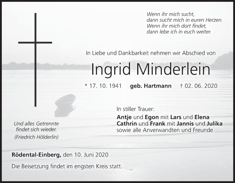 Hier finden Sie alle Traueranzeigen aus der Zeitung, die bisher für Ingrid Minderlein erschienen sind. Weitere Traueranzeigen, die in der Zeitung erscheinen, werden hier ebenfalls aufgelistet