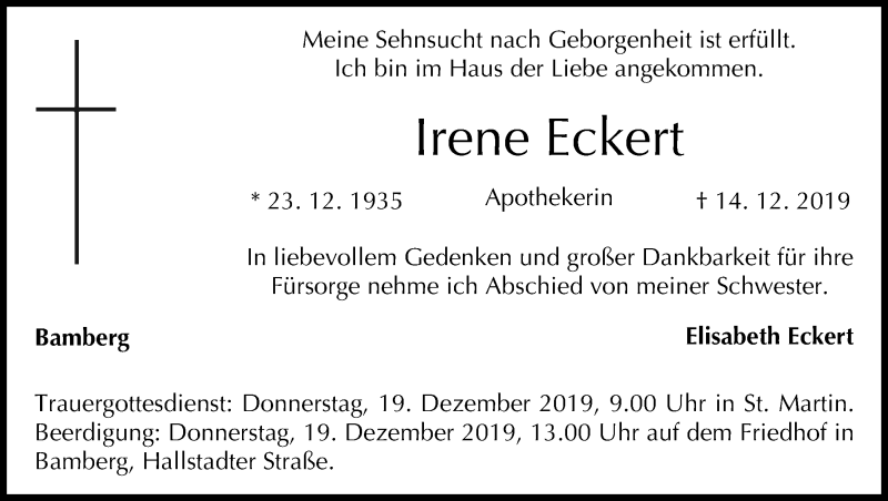 Hier finden Sie alle Traueranzeigen aus der Zeitung, die bisher für Irene Eckert erschienen sind. Weitere Traueranzeigen, die in der Zeitung erscheinen, werden hier ebenfalls aufgelistet