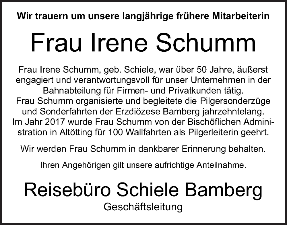 Hier finden Sie alle Traueranzeigen aus der Zeitung, die bisher für Irene Schumm erschienen sind. Weitere Traueranzeigen, die in der Zeitung erscheinen, werden hier ebenfalls aufgelistet