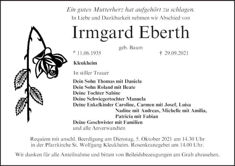 Hier finden Sie alle Traueranzeigen aus der Zeitung, die bisher für Irmgard Eberth erschienen sind. Weitere Traueranzeigen, die in der Zeitung erscheinen, werden hier ebenfalls aufgelistet