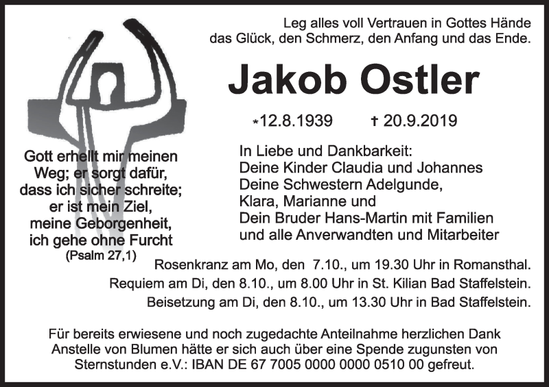 Hier finden Sie alle Traueranzeigen aus der Zeitung, die bisher für Jakob Ostler erschienen sind. Weitere Traueranzeigen, die in der Zeitung erscheinen, werden hier ebenfalls aufgelistet