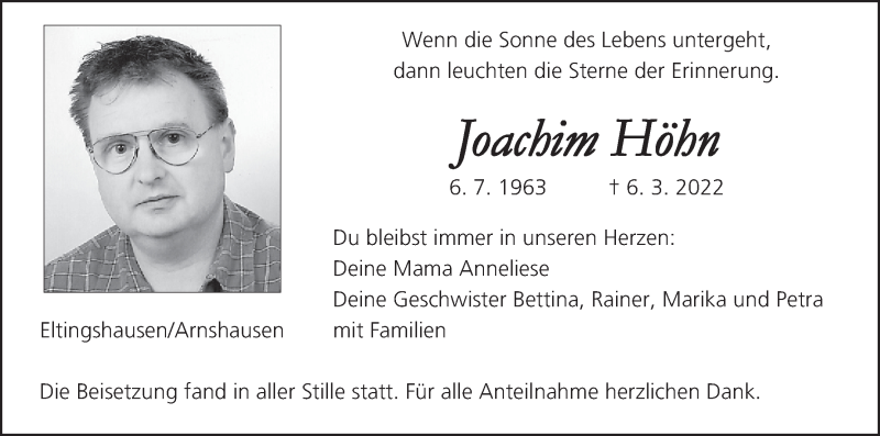 Hier finden Sie alle Traueranzeigen aus der Zeitung, die bisher für Joachim Höhn erschienen sind. Weitere Traueranzeigen, die in der Zeitung erscheinen, werden hier ebenfalls aufgelistet