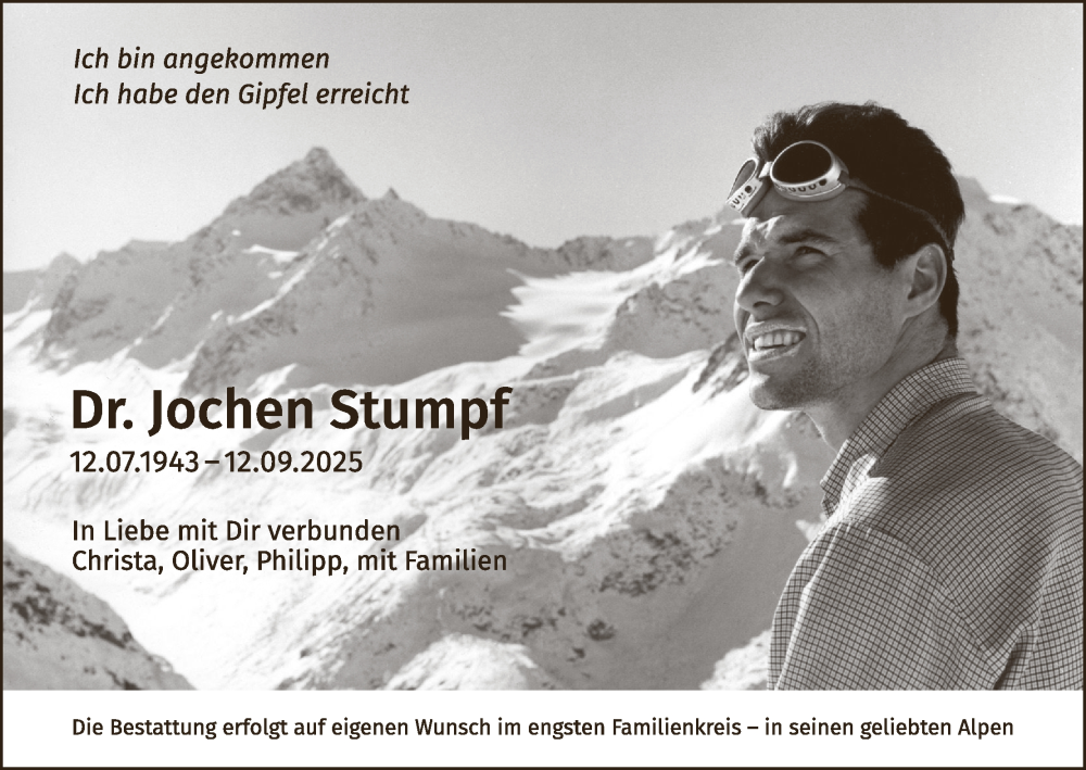 Hier finden Sie alle Traueranzeigen aus der Zeitung, die bisher für Jochen Stumpf erschienen sind. Weitere Traueranzeigen, die in der Zeitung erscheinen, werden hier ebenfalls aufgelistet