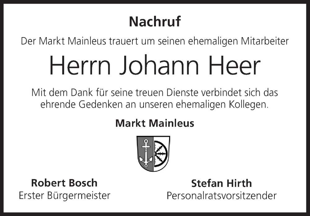 Hier finden Sie alle Traueranzeigen aus der Zeitung, die bisher für Johann Heer erschienen sind. Weitere Traueranzeigen, die in der Zeitung erscheinen, werden hier ebenfalls aufgelistet