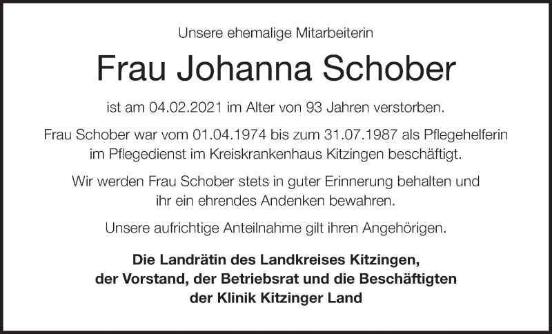 Hier finden Sie alle Traueranzeigen aus der Zeitung, die bisher für Johanna Schober erschienen sind. Weitere Traueranzeigen, die in der Zeitung erscheinen, werden hier ebenfalls aufgelistet