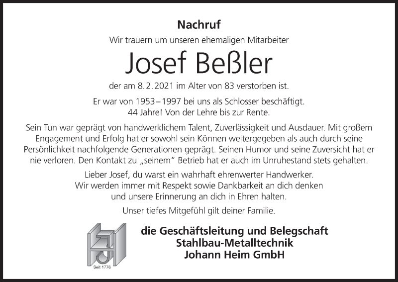 Hier finden Sie alle Traueranzeigen aus der Zeitung, die bisher für Josef Beßler erschienen sind. Weitere Traueranzeigen, die in der Zeitung erscheinen, werden hier ebenfalls aufgelistet