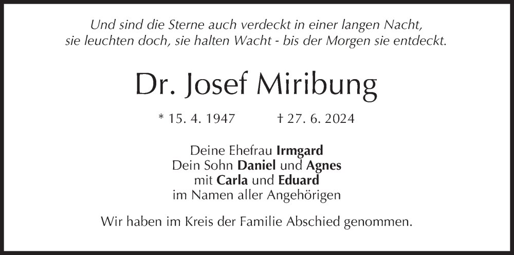 Hier finden Sie alle Traueranzeigen aus der Zeitung, die bisher für Josef Miribung erschienen sind. Weitere Traueranzeigen, die in der Zeitung erscheinen, werden hier ebenfalls aufgelistet