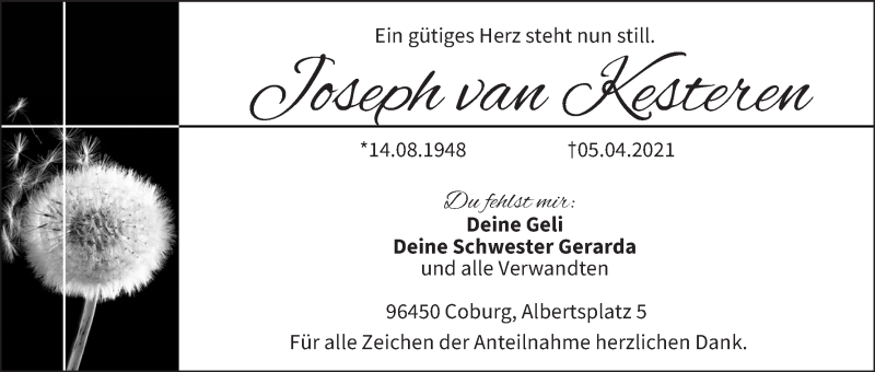 Hier finden Sie alle Traueranzeigen aus der Zeitung, die bisher für Joseph van Kesteren erschienen sind. Weitere Traueranzeigen, die in der Zeitung erscheinen, werden hier ebenfalls aufgelistet