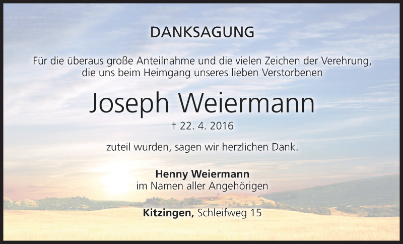 Hier finden Sie alle Traueranzeigen aus der Zeitung, die bisher für Joseph Weiermann erschienen sind. Weitere Traueranzeigen, die in der Zeitung erscheinen, werden hier ebenfalls aufgelistet