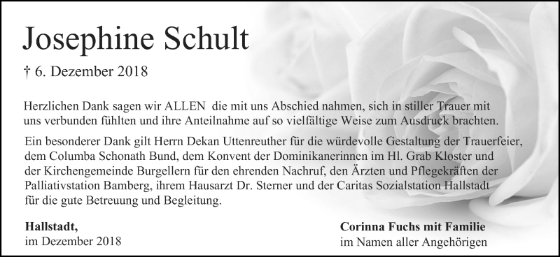 Hier finden Sie alle Traueranzeigen aus der Zeitung, die bisher für Josephine Schult erschienen sind. Weitere Traueranzeigen, die in der Zeitung erscheinen, werden hier ebenfalls aufgelistet