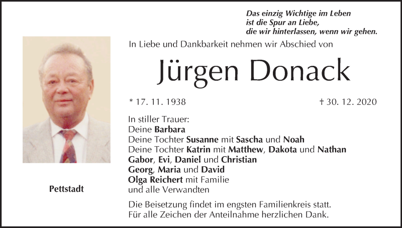 Hier finden Sie alle Traueranzeigen aus der Zeitung, die bisher für Jürgen Donack erschienen sind. Weitere Traueranzeigen, die in der Zeitung erscheinen, werden hier ebenfalls aufgelistet