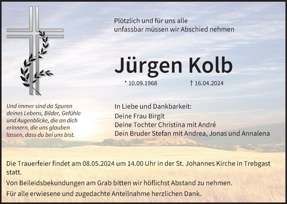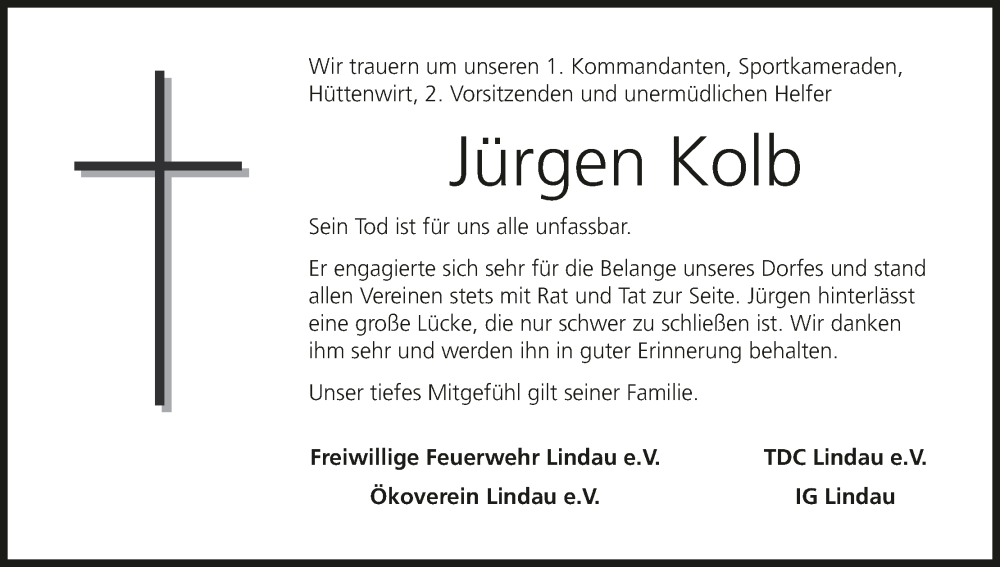 Hier finden Sie alle Traueranzeigen aus der Zeitung, die bisher für Jürgen Kolb erschienen sind. Weitere Traueranzeigen, die in der Zeitung erscheinen, werden hier ebenfalls aufgelistet