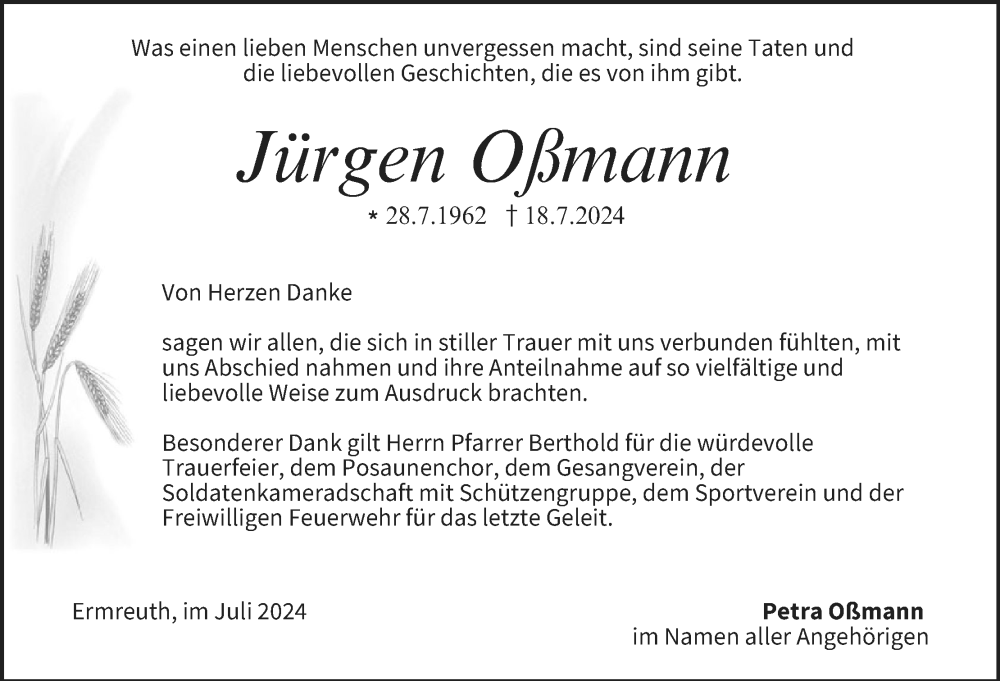 Hier finden Sie alle Traueranzeigen aus der Zeitung, die bisher für Jürgen Oßmann erschienen sind. Weitere Traueranzeigen, die in der Zeitung erscheinen, werden hier ebenfalls aufgelistet