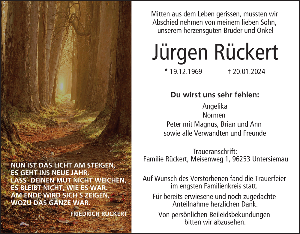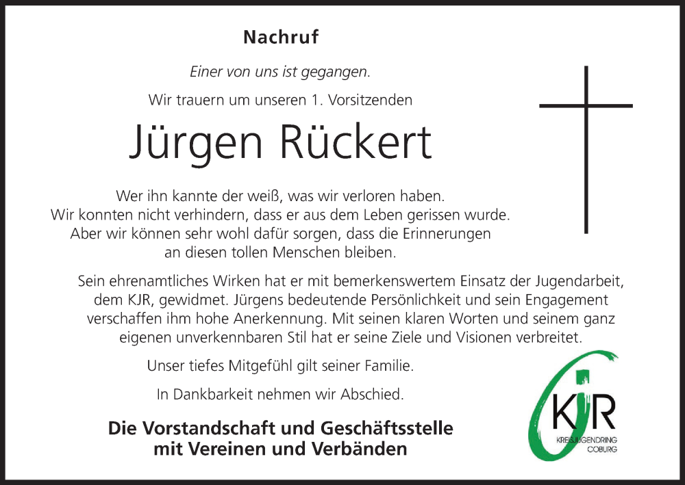 Hier finden Sie alle Traueranzeigen aus der Zeitung, die bisher für Jürgen Rückert erschienen sind. Weitere Traueranzeigen, die in der Zeitung erscheinen, werden hier ebenfalls aufgelistet