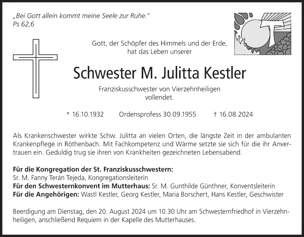 Hier finden Sie alle Traueranzeigen aus der Zeitung, die bisher für Julitta Kestler erschienen sind. Weitere Traueranzeigen, die in der Zeitung erscheinen, werden hier ebenfalls aufgelistet
