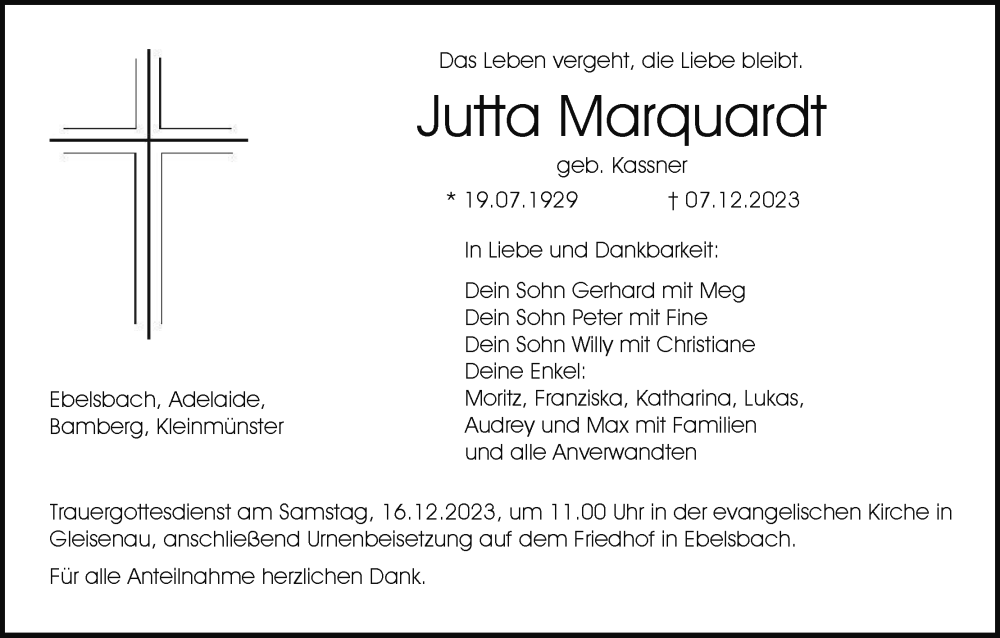 Hier finden Sie alle Traueranzeigen aus der Zeitung, die bisher für Jutta Marquardt erschienen sind. Weitere Traueranzeigen, die in der Zeitung erscheinen, werden hier ebenfalls aufgelistet