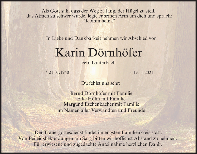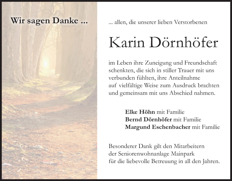 Hier finden Sie alle Traueranzeigen aus der Zeitung, die bisher für Karin Dörnhöfer erschienen sind. Weitere Traueranzeigen, die in der Zeitung erscheinen, werden hier ebenfalls aufgelistet