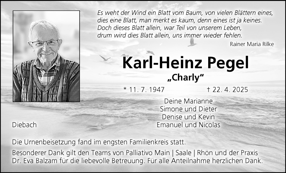 Hier finden Sie alle Traueranzeigen aus der Zeitung, die bisher für Karl-Heinz Pegel erschienen sind. Weitere Traueranzeigen, die in der Zeitung erscheinen, werden hier ebenfalls aufgelistet
