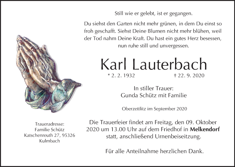 Hier finden Sie alle Traueranzeigen aus der Zeitung, die bisher für Karl Lauterbach erschienen sind. Weitere Traueranzeigen, die in der Zeitung erscheinen, werden hier ebenfalls aufgelistet