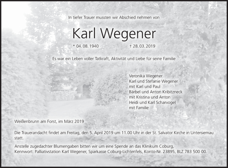 Hier finden Sie alle Traueranzeigen aus der Zeitung, die bisher für Karl Wegener erschienen sind. Weitere Traueranzeigen, die in der Zeitung erscheinen, werden hier ebenfalls aufgelistet