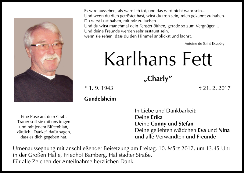 Hier finden Sie alle Traueranzeigen aus der Zeitung, die bisher für Karlhans Fett erschienen sind. Weitere Traueranzeigen, die in der Zeitung erscheinen, werden hier ebenfalls aufgelistet