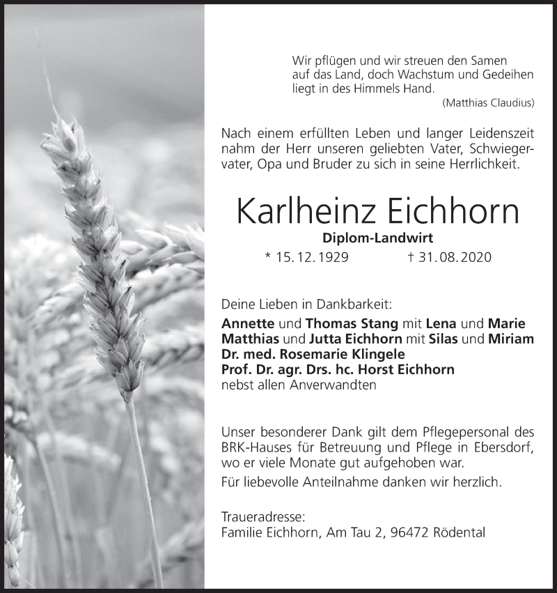 Hier finden Sie alle Traueranzeigen aus der Zeitung, die bisher für Karlheinz Eichhorn erschienen sind. Weitere Traueranzeigen, die in der Zeitung erscheinen, werden hier ebenfalls aufgelistet