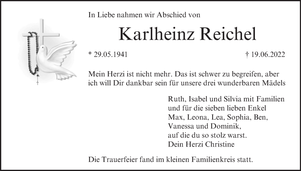 Hier finden Sie alle Traueranzeigen aus der Zeitung, die bisher für Karlheinz Reichel erschienen sind. Weitere Traueranzeigen, die in der Zeitung erscheinen, werden hier ebenfalls aufgelistet