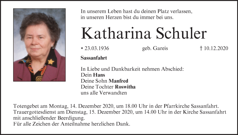 Hier finden Sie alle Traueranzeigen aus der Zeitung, die bisher für Katharina Schuler erschienen sind. Weitere Traueranzeigen, die in der Zeitung erscheinen, werden hier ebenfalls aufgelistet