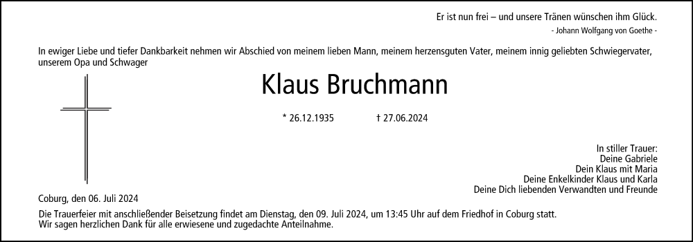 Hier finden Sie alle Traueranzeigen aus der Zeitung, die bisher für Klaus Bruchmann erschienen sind. Weitere Traueranzeigen, die in der Zeitung erscheinen, werden hier ebenfalls aufgelistet